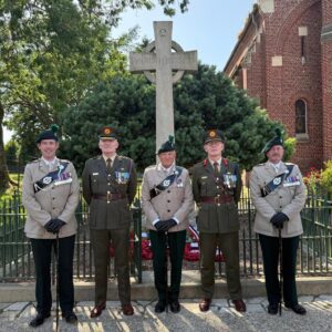 Later in Glasnevin Cemetery, Minister for Communications Mr White and the British Ambassador H.E Dominick Chilcott participated in a wreath laying ceremony and unveiled eight paving stones commemorating Irish-born soldiers who won the Victoria Cross during the First World War. Four of the soldiers involved: Pte William Kenealy from the Lanchasire Fusiliers, Pte William Cosgrave from the Royal Munster Fusiliers, Capt Gerald O’Sullivan from the Royal Inniskilling Fusiliers and Sgt James Somers also from the Royal Inniskilling won their VCs at Gallipoli. Colonel Bill Gibson (Retd) represented the Military Heritage of Ireland Trust (CLG) and was one of many who laid a wreath at the Cross of Sacrifice.