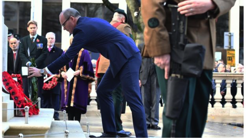 Speaking to reporters after he placed a laurel wreath on the cenotaph, he reflected on the 200,000 Irish men and women who fought in the first World War, 40,000 of whom never returned. Minister Coveney said: