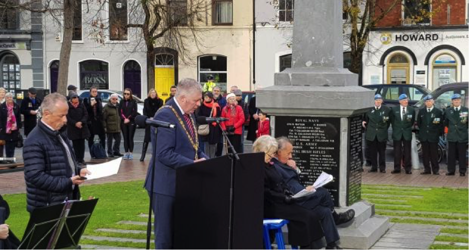 The Lord Mayor of Cork Cllr Mick Finn hosted an Armistice Day Commemoration at the Cenotaph on the South Mall, in honour of the 4,500 Cork men and women who died during the First World War.