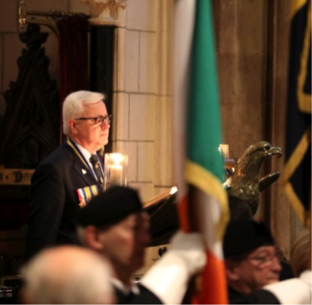 The service was led by the Dean, the Very Revd William Morton and sung by the Cathedral Choir. Lessons were read by the H.E. Mr Robin Barnett CMG the British Ambassador to Ireland and Major Brian Duffy Chairman Royal British Legion (ROI). The exhortation was led by Lieutenant-Colonel Ken Martin (Retd), and was followed by the Last Post, the Reveille and the Kohima Epitaph. The sermon was preached by the Dean of St Patrick’s Cathedral in Armagh Rev Gregory Dunstan. He praised the “generosity and inclusiveness” of the last four years which he said had seen the “recovered memory” of those who died in the war. At the same time, Irish people honoured “those whose courage and sacrifice are in the title deeds of the State”.