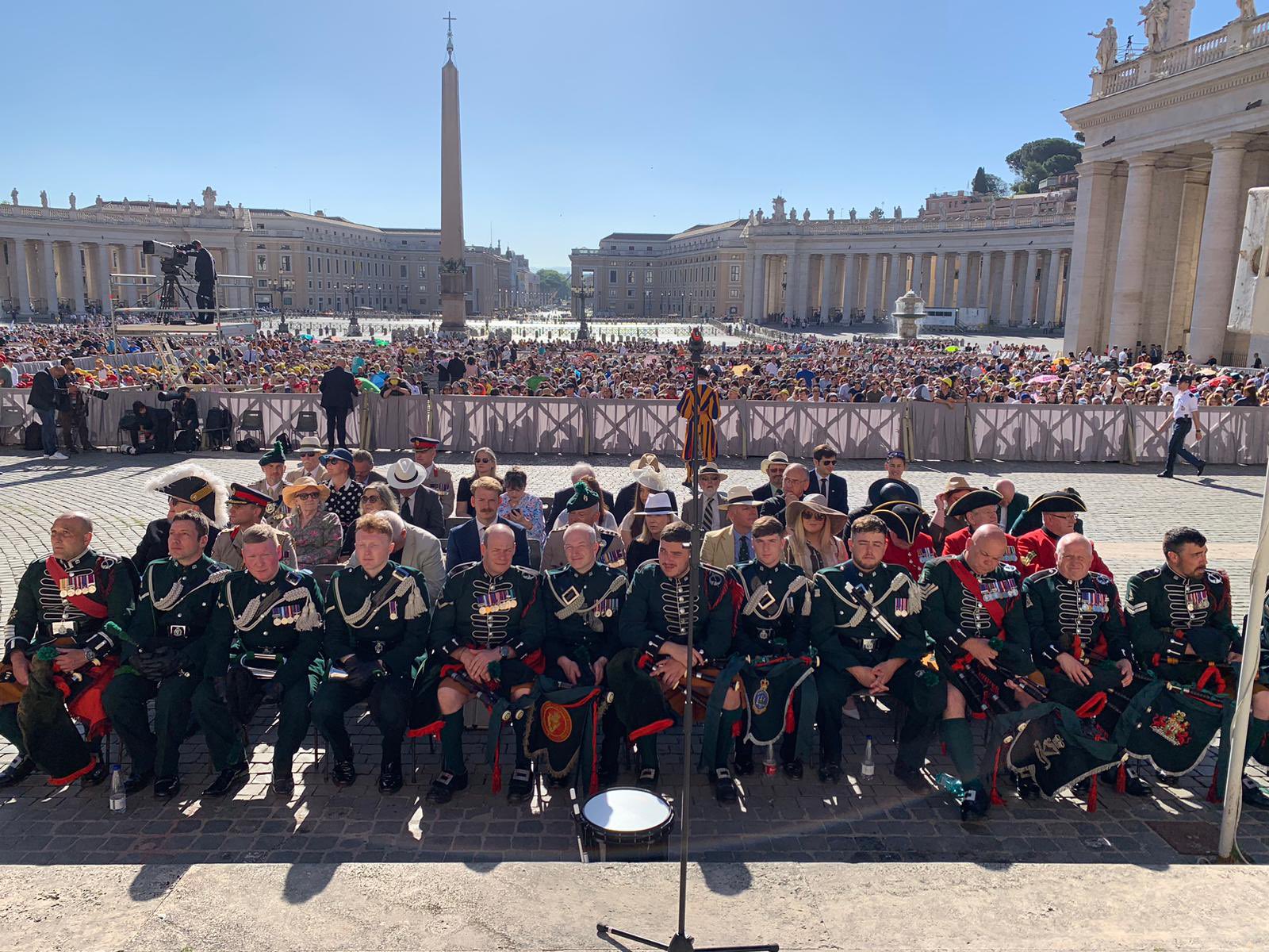 On 12 June, 2024 the Bugles, Pipes and Drums of the Royal Irish Regiment played its Regimental March ‘Killaloe’ for His Holiness Pope Francis, during the General Assembly in Piazza San Pietro.