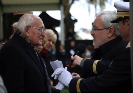 On the 06 June 2014, in Ouisrtreham, French President François Hollande paid tribute to all non-French citizens who participated in the liberation of France in the Second World War. Since then, Irishmen involved in the liberation have been invested with the Legion of Honour. The most recent recipients were Albert Sutton (94) from Clontarf, County Dublin and James Moore (92) from Borrisokane, County Tipperary. Barbara Allshire received the Légion d’Honneur on behalf of her deceased husband Jack.
