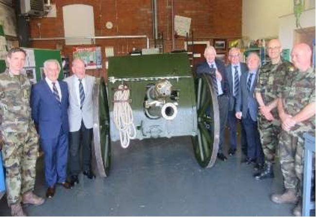 The Field Gun was on display as part of an outdoor antique gallery for many years in the Lazy Susan Dinner Theatre. In 2015, Ken Smith-Christmas of the US Army Museum at Fort Belvoir, Virginia, discovered that the gun was for sale, and subsequently facilitated a valuable interface between the gun’s owner Mr Glenn Gates and Commandant Lar Joye of the National Museum of Ireland, resulting in the owner kindly donating the gun to the Irish Defence Forces. During the period February through August 2016, the acquisition and recovery of the Field Gun to Ireland was successfully conducted by Colonel Conor Fitzsimons Military Advisor Irish Permanent Representation UN New York, Lieutenant-Colonel Paul Carey J4 Branch Defence Forces Headquarters, Commandant Stephen MacEoin OIC Military Archives, and Commandant Lar Joye (AR).
