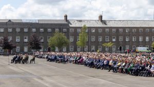The military and religious ceremony in Collins Barracks Cork was held in the presence of the President, the Taoiseach and other members of the Government of Ireland, members of the Oireachtas, the Council of State, the Diplomatic Corps, the Judiciary, the Defence Forces, An Garda Síochána, the next-of-kin of those who died on service with the United Nations, relatives of the 1916 Leaders, Northern Ireland representatives, a wide cross-section of the community, representatives of a range of Representation Associations and Veterans Associations including RACO, PDFORRA, RDFRA, ARCO, ONE. IUNVA and RBL, and a significant number of Defence Forces Veterans. The Chairman of the Military Heritage of Ireland Trust, Brigadier-General Paul Fry (Retd) led the Trust’s representation at the ceremony.