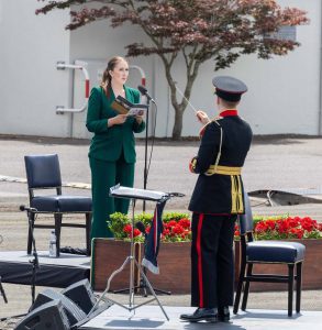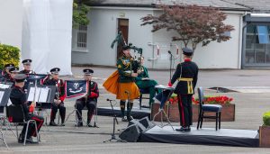 Music interludes were provided by Ms Gemma Ní Bhriain– Soloist, accompanied by the Band of 1 Brigade, and included Be Thou My Vision and The Lark in the Clear Air.