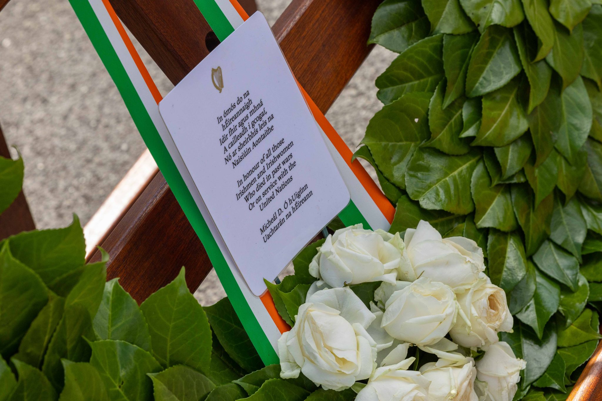 The Commemorative Plaque carries the following inscription: “In honour of all those Irishmen and Irishwomen, who died in past wars, or on service with the United Nations”.