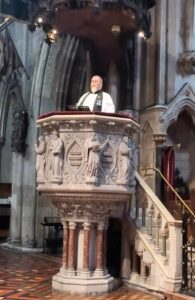 The Sermon was preached by The Reverend Alan Synnott, Rector, Camlough Union, Diocese of Armagh, and former Chaplain to 2 Armoured Field Ambulance based in Germany. Representatives of the RAMC (Ulster Branch) were present, and their Standard was on display in the North Transept.