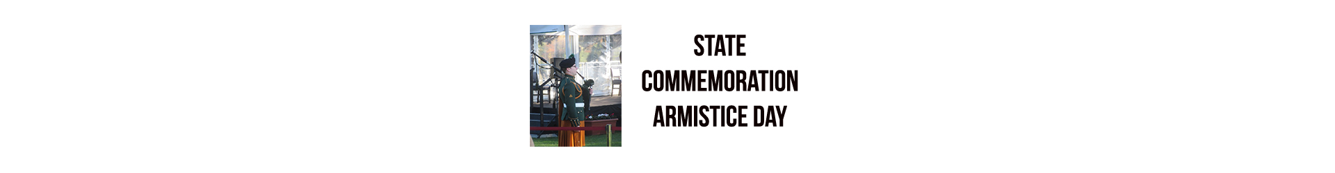 The day’s events commenced at 1000hrs with the unveiling of five Commemorative Plaques in honour of Irish men who received the Victoria Cross for their acts of bravery in World War One, including the last Irish person to be awarded a VC before the Armistice. This was followed by the State commemoration at 1000hrs. The State commemoration was attended by Uachtarán na hÉireann tofa Michael D Higgins, Minister for Culture, Heritage and the Gaeltacht Josepha Madigan TD, and representatives of 47 countries.