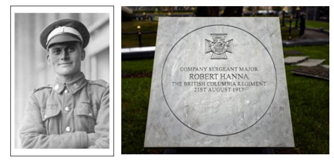 Company Sergeant-Major Robert Hanna was born in Kilkeel, County Down, on 6 August 1886, and emigrated to Canada in 1905. He joined the Canadian Expeditionary Force during the First World War, and by the summer of 1917 was a Company Sergeant-Major (CSM) serving with the 29th Vancouver Infantry Battalion.