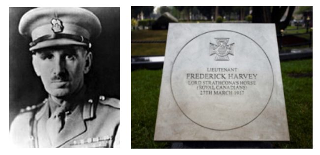 Lieutenant Harvey received the Military Cross for his role in the Lord Strathcona’s Horse advance on Moreuil Wood on 30 March 1918, and was also awarded the French Croix de Guerre. He was later awarded a CBE and his Victoria Cross is displayed at the Museum of the Regiments.